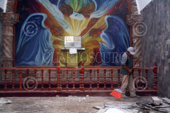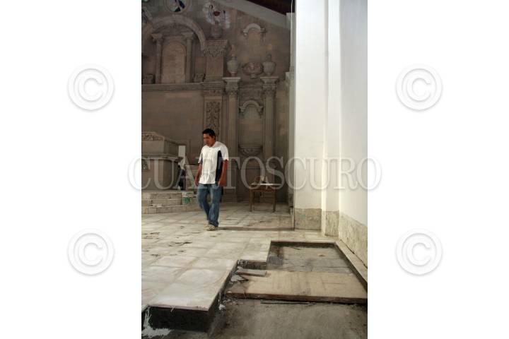 CUNDUCÁN, TABASCO, 19ENERO2009.- Según datos aportados en algunas de la lapidas encontradas dentro del edificio de la iglesia de la Natividad de María, muchas de estas fueron habilitadas desde los años 1800, y se cree que en algunas de estas criptas descansan los restos humanos de ilustres políticos tabasqueños; tal es el caso del primer gobernador, como también Ceferino Sánchez y Josefa Mármol, padres del abogado, escritos y defensor de la República Manuel Sánchez Mármol y de José Eduardo Cárdenas y Romero (1765-1821), quien fue nombrado diputado por Tabasco a las Cortes de Cádiz. FOTO: MARCO POLO GUZMÁN HERNÁNDEZ/CUARTOSCURO.COM