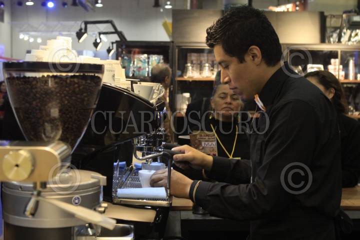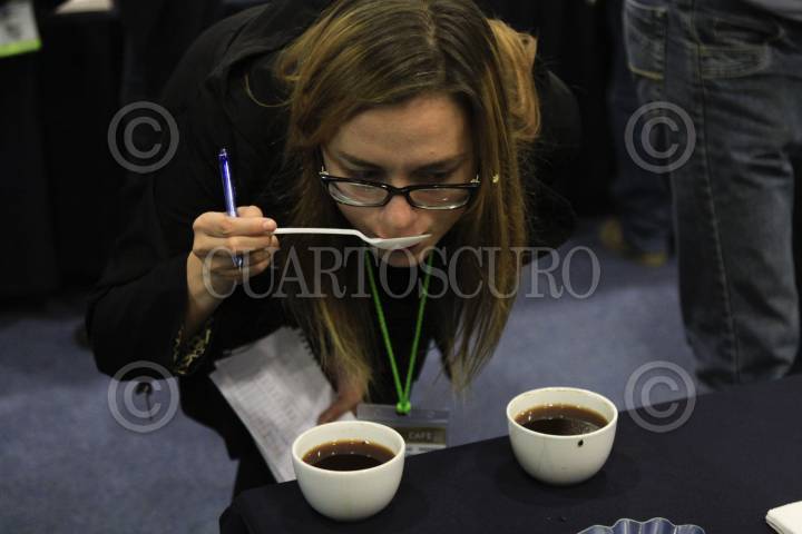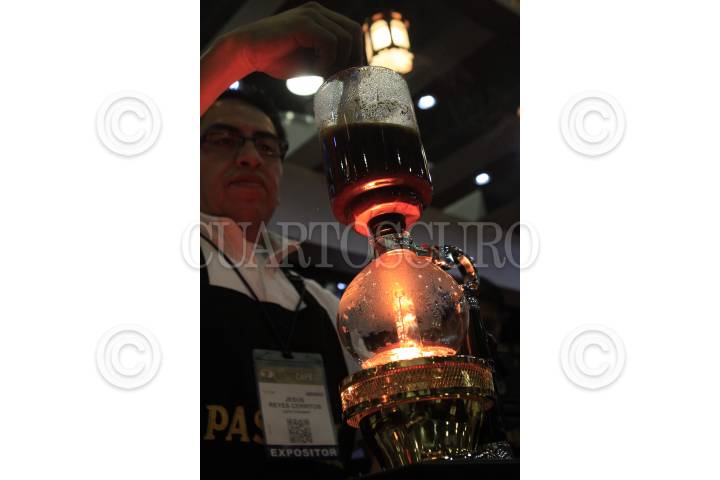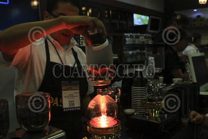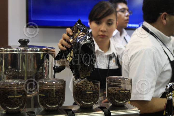MÉXICO, D.F., 04SEPTIEMBRE2014- Decenas de expositores ofrecen materias primas, maquinas de café barista, tostadoras, técnicas innovadoras para preparar esta bebida durante el primer día de Expo Café en WTC de la colonia Napóles. La gente puede degustar muestras y observar como preparan esta bebida los profesionales del café. FOTO: MOISÉS PABLO /CUARTOSCURO.COM