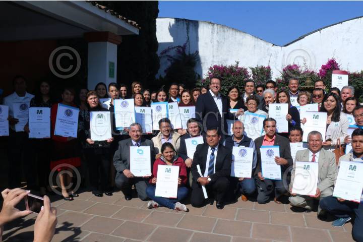 TLAXCALA, TLAXCALA, 02FEBRERO2017.- El gobernador Marco Mena entregó un total de 69 distintivos H, M y PL, a 51 empresas del sector turismo, restaurantero y de cafeterías, acción que ubica a Tlaxcala en primer lugar en certificación turística. FOTO: JORGE LEZAMA /CUARTOSCURO.COM