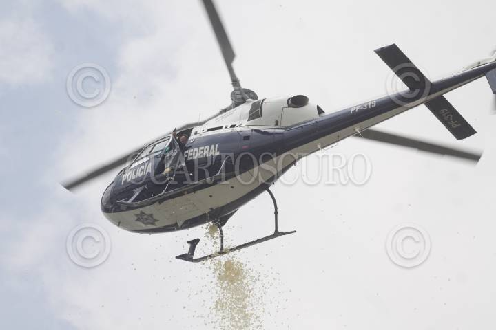 MÉXICO, D.F., 25SEPTIEMBRE2013.- Un helicóptero de la Secretaría de Seguridad Pública Federal lanza pétalos de flores al terminar el homenaje a los cinco policías federales que murieron abordo de un helicóptero Black Hawk, quienes perecieron durante los operativos que realizaba la Secretaría de Seguridad Pública Federal de ayuda a los damnificados en Guerrero por las lluvias provocadas por los meteoros Ingrid y Manuel. FOTO: MOISÉS PABLO /CUARTOSCURO.COM