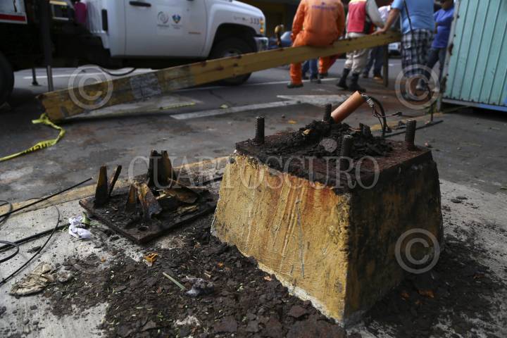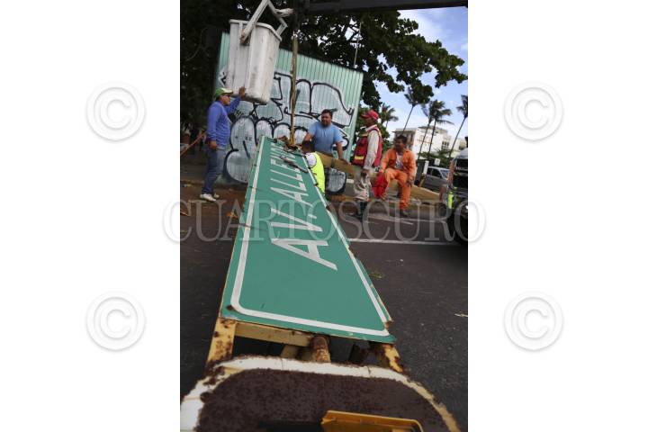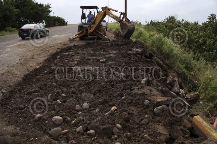 VERACRUZ, VERACRUZ, 19OCTUBRE2015.- El paso del frente frío número 6 y 7 dejó esta mañana un deslave en el distribuidor vial de J.B. Lobos que lleva al Aeropuerto y algunos semáforos caídos en la conurbación por las fuertes lluvias que sucedieron durante la madrugada. FOTO: ILSE HUESCA /CUARTOSCURO.COM