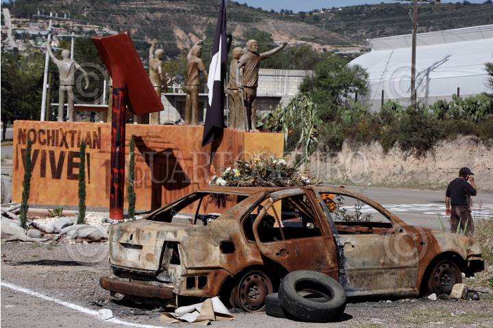 ASUNCIÓN NOCHIXTLÁN, OAXACA, 01NOVIEMBRE2017.- Habitantes, familiares y dirigentes de la comisión de víctimas del 19 de Junio del 2016 en Nochixtlán, colocaron una ofrenda en el monumento a los caídos y brindaron guardia en el panteón a sus difuntos. FOTO: ADRIANA ALVAREZ /CUARTOSCURO.COM