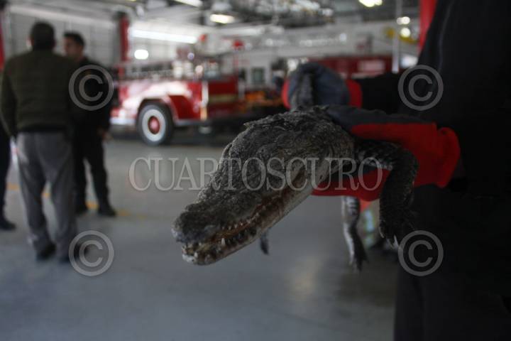 Bomberos aseguraron un caimán en las inmediaciones del fraccionamiento Las Arcadas
