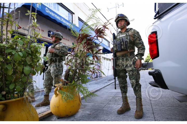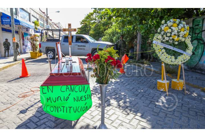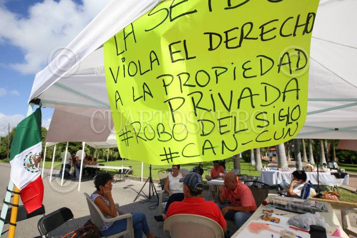CANCÚN, QUINTANA ROO, 02NOVIEMBRE2017.- Clientes de la empresa First National Security, realizan un plantón afuera de dicha empresa ya que la Subprocuraduría Especializada en Investigación de Delincuencia Organizada (SEIDO) quiere llevarse sus cajas de seguridad a la Ciudad de México como parte de una investigación de la que no han sido informados. Elementos de la Marina y Policia Federal resguardan las inmediaciones del lugar. FOTO: CUARTOSCURO.COM
