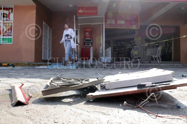 CUERNAVACA, MORELOS, 15NOVIEMBRE2019.- Una perito de la Unidad de Procesamiento de la Escena de Crimen de la Fiscalía General del Estado recolecta evidencias del robo en un cajero automático, ubicado en una zona comercial a la entrada de la colonia Antonio Barona. El dispensador de efectivo fue asaltado, por segunda vez, durante la madrugada. Tras el primer hecho, se reforzó la seguridad con pilotes y una base, pero no fue suficiente para detener a los delincuentes. FOTO: MARGARITO PÉREZ RETANA /CUARTOSCURO.COM
