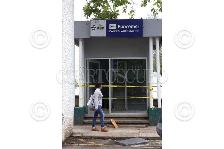 VILLAHERMOSA, TABASCO, 14MARZO2013.- Un cajero del banco Bancomer fue sustraído completamente; arrancado desde sus cimientos, en la Zona de la Cultura de la UJAT. Según detallan las autoridades ministeriales, que un comando de cuatro personas encapuchadas descendieron de una camioneta en la cual subieron el despachador de dinero en efectivo ubicado en la avenida Universidad de esta capital. FOTO: MARCO POLO GUZMÁN HERNÁNDEZ /CUARTOSCURO.COM
