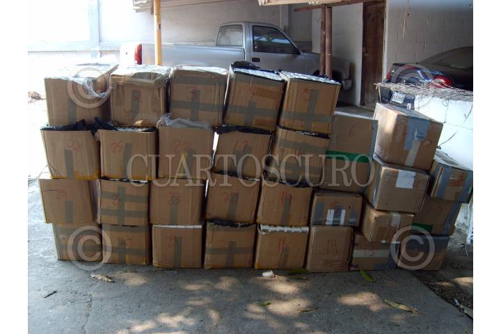 CÁRDENAS, TABASCO, 17OCTUBRE2007.- Agentes de la Policía Federal y de la Agencia Federal de Investigaciones lograron detener por medio de un operativo sorpresa implementado sobre la carretera federal Cárdenas-Coatzacoalcos a Juan Alberto Gutiérrez y Cruz Reyes que trasportaban en la caja de un trailers 21 mil cajetillas de cigarros por contrabando. FOTO: MARCO POLO GUZMÁN HERNÁNDEZ/CUARTOSCURO.COM