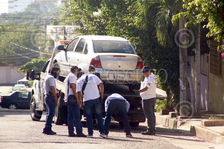ACAPULCO GUERRERO 11ENERO2019.- Los cuerpos de dos hombres y una joven al parecer menor de edad fueron encontrados esta mañana dentro de automóvil gris tipo Chevy que se encontraba abandonado en la calle Oaxaca de la colonia Progreso, el hallazgo por parte de policías ministeriales fue luego de una llamada de emergencia, los cuerpos de los dos hombres se encontraban en la cajuela del auto y el de la joven en los asientos del auto la cual vestía un uniforme de la Universidad Autónoma de Guerrero, auto fue trasladado en una grúa a las instalaciones del Servicio Medico Forense para hacer el levantamiento de los cuerpos. FOTO: CARLOS ALBERTO CARBAJAL / CUARTOSCURO.COM