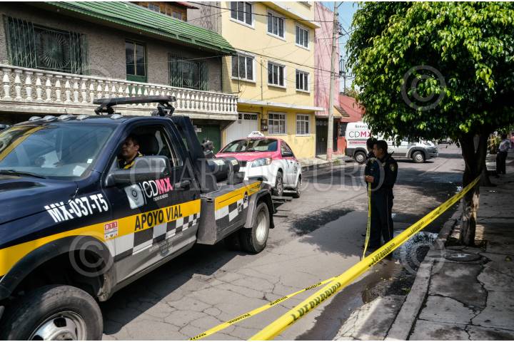 CIUDAD DE MÉXICO, 12JULIO2019.- Fue encontrado el cuerpo de una persona sin vida al interior de la cajuela de un taxi color rosa y blanco, el cual fue remolcado por una grúa de la Secretaría de Seguridad Ciudadana para ser llevado al Ministerio Público para la identidad de la persona. Los hechos se registraron en las calles de Jesús Garibay y Consulado en la colonia Puente Blanco alcaldía Iztapalapa. FOTO: ARMANDO MONROY /CUARTOSCURO.COM