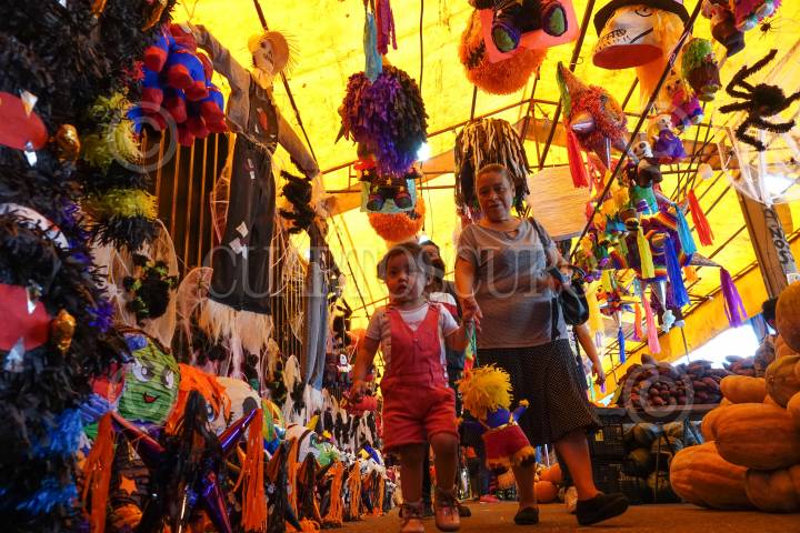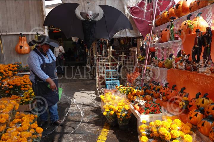 En el marco de los festejos previos del Día de Muertos y Halloween, capitalinos comenzaron las compras de Flor de cempasúchil, calaveritas, calabazas y disfraces en el Mercado de Jamaica