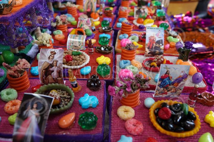 Elementos utilizados para la decoración de calaveritas de amaranto y pepita de calabaza. FOTO: ROGELIO MORALES /CUARTOSCURO.COM