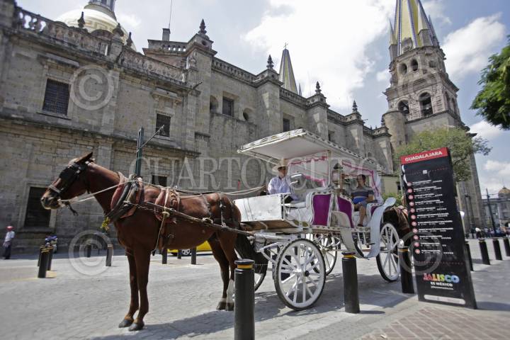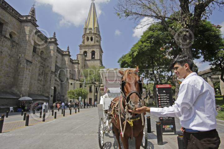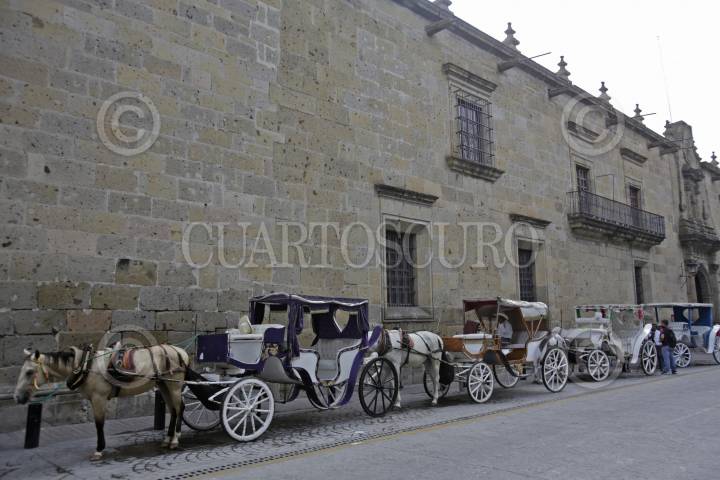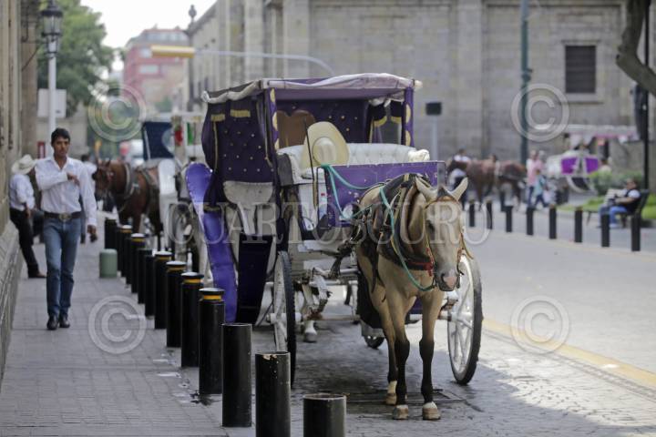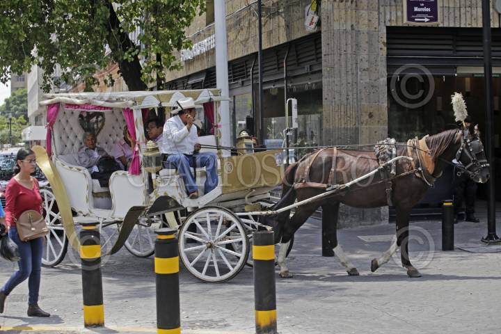 GUADALAJARA, JALISCO. 14SEPTIEMBRE2017.- Calandrias tradicionales durante sus recorridos por el centro de la ciudad, estas en un poco tiempo serán sustituidas por calandrias de motor, esto con la finalidad de que los caballos ya no sean más los que hagan ese trabajo. FOTO: FERNANDO CARRANZA GARCIA /CUARTOSCURO.COM