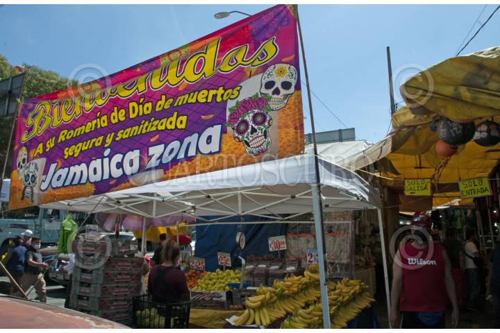 Decenas de personas visitan la romería en el Mercado Jamaica para realizar sus compras de Día de Muertos.