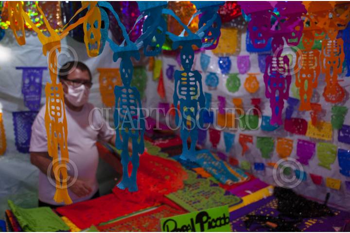 El papel picado es uno de los productos que más se vende en la romería del Mercado Jamaica.