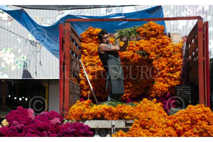 Cientos de flores de cempasúchil son puestas en venta durante esta temporada en el Mercado Jamaica.