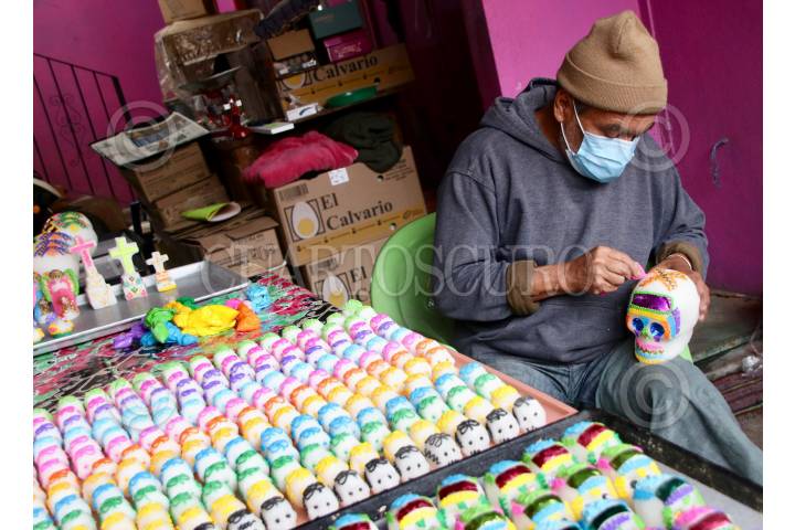El artesano oaxaqueño Luis Colmenares ha hecho 30 mil calaveritas de azúcar para los festejos de Día de Muertos.