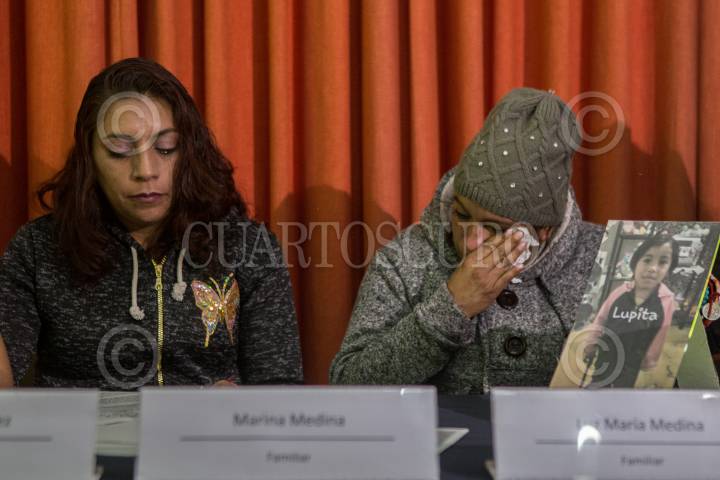 CIUDAD DE MÉXICO, 10ENERO2018.- Mariana Medina, Luz María Medina, familiares de Lupita, conocida como "la niña de las calcetas rojas" quien presuntamente fue asesinada por su padrastro y madre, ofrecieron una conferencia donde dieron a conocer el rostro de la pequeña y los avances en el caso. En la rueda de prensa estuvieron acompañadas por el padre Alejandro Solalinde y sus defensoras legales. FOTO: TERCERO DÍAZ /CUARTOSCURO.COM