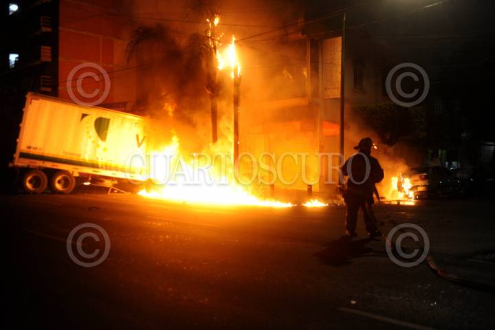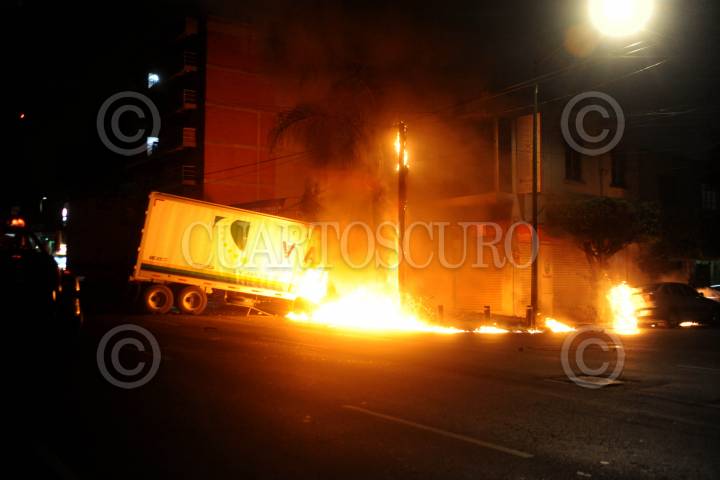 Choque entre tráiler y auto deja conductor calcinado, una mujer sin vida y seis lesionados, además de dos predios y dos autos en llamas, que se incendiaron por el camión que termino al interior de los negocios envuelto en llamas. Los hechos en la colon