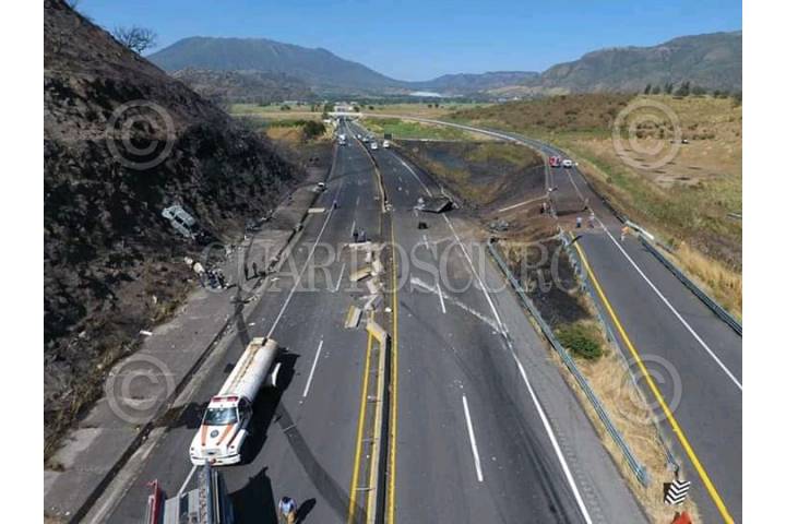 Escena de los daños en la autopista Tepic-Guadalajara donde una pipa explotó.