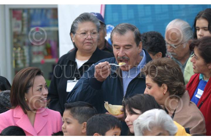 MEXICO, D.F. 02FEBRERO2005.- El presidente Vicente Fox, disfruta de los tamales que se dieron en las instalaciones de Liconsa, para celebrar el ¨Día de la Calendaria¨. FOTO: Sandra Perdomo/CUARTOSCURO.COM