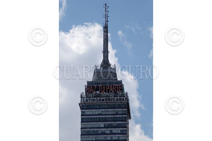 La Torre Latino mantiene el mensaje "Separa tus residuos, haz tu parte", con la intención de que los capitalinos separen la basura para no fomentar el calentamiento global