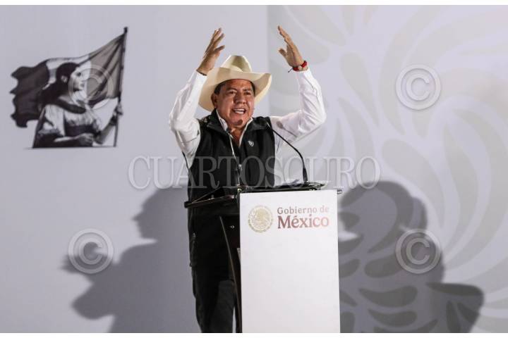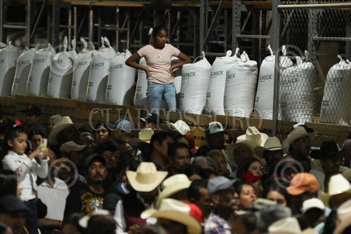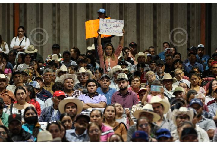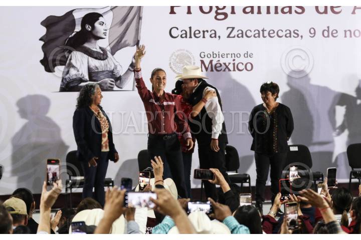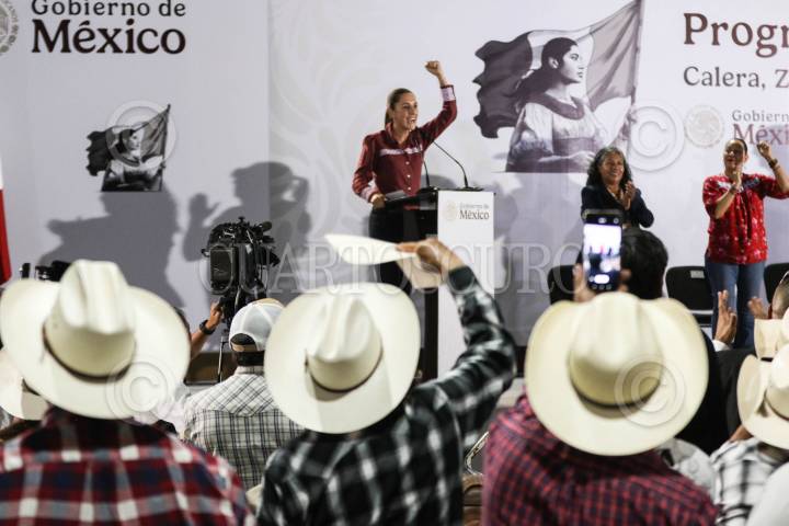 CALERA, ZACATECAS, 09NOVIEMBRE2024.- Claudia Sheinbaum, presidenta de México, presidio el evento “Programas de Apoyo al Campo” realizado en la Planta Benificiadora del Estado. Durante el evento estuvo acompañada por David Monreal, gobernador del Estado y por Julio Berdegué, secretario de Agricultura. FOTO: ADOLFO VLADIMIR / CUARTOSCURO.COM