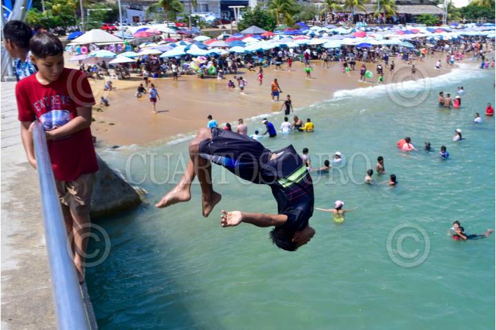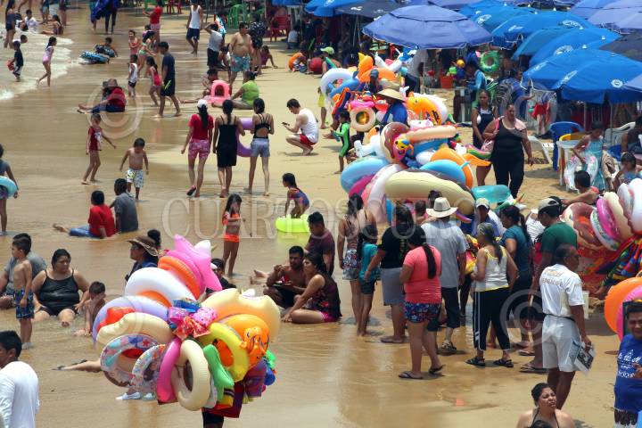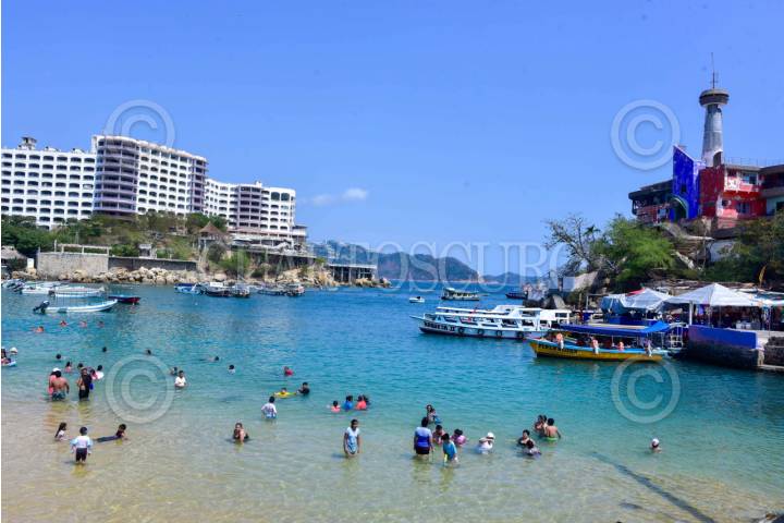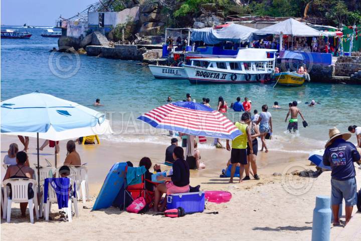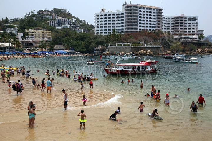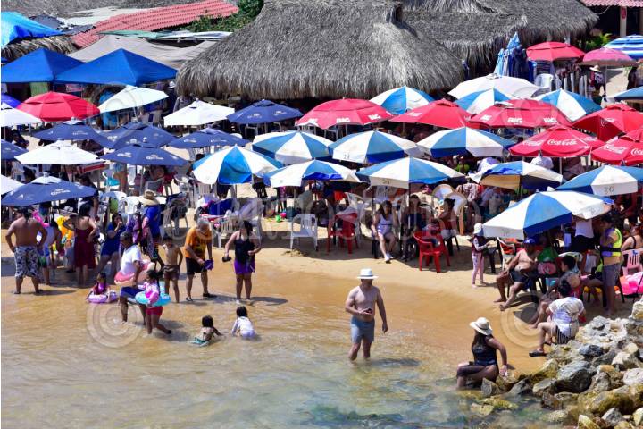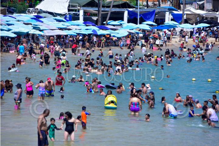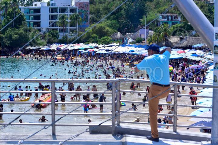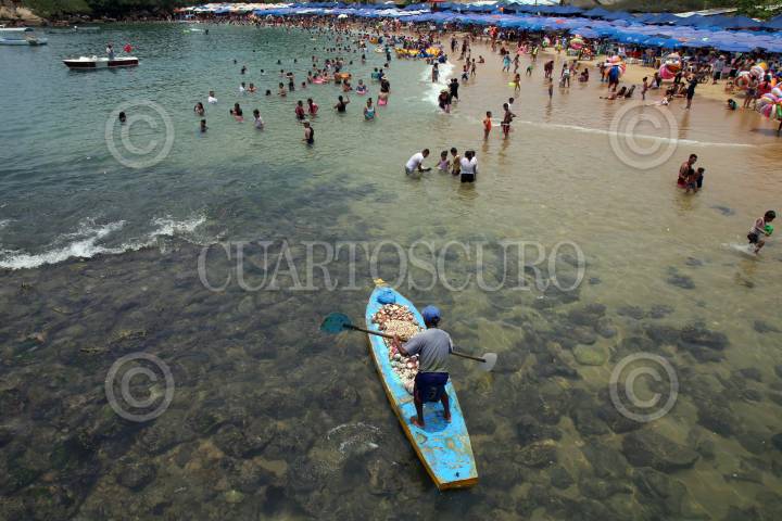 Con gran afluencia de turismo se observan las playas de Caleta y Caletilla, en Acapulco.