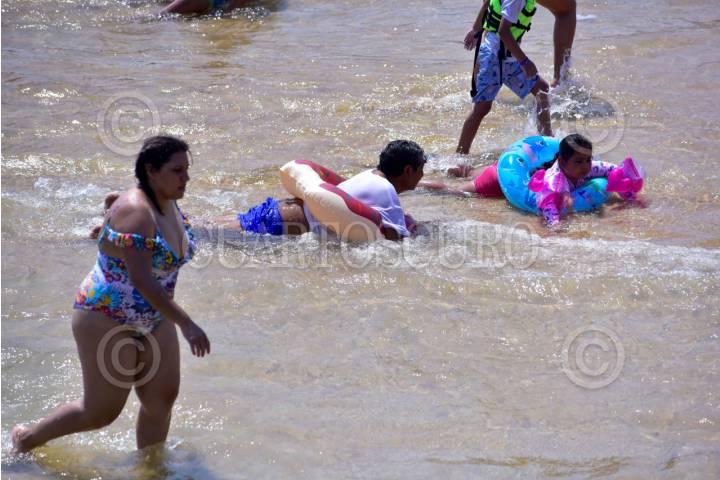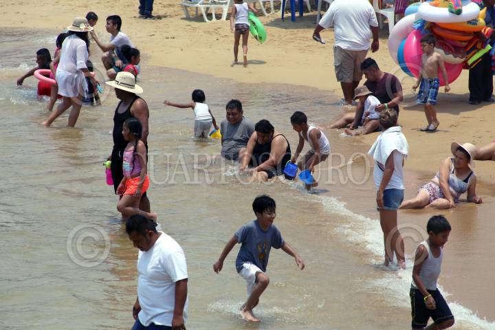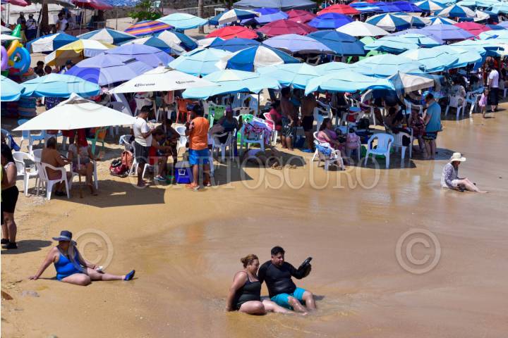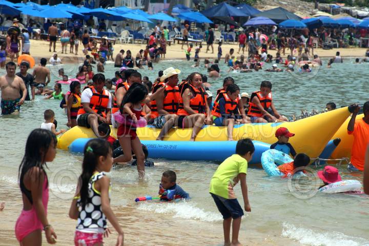 ACAPULCO, GUERRERO, 28MARZO2025..- Familias de turistas conviven en las populares playas de Caleta y Caletilla, en la Zona Tradicional de Acapulco, donde la ocupación hotelera para este inicio de fin de semana es de 40.4 %. FOTO: CARLOS ALBERTO CARBAJAL/CUARTOSCURO.COM