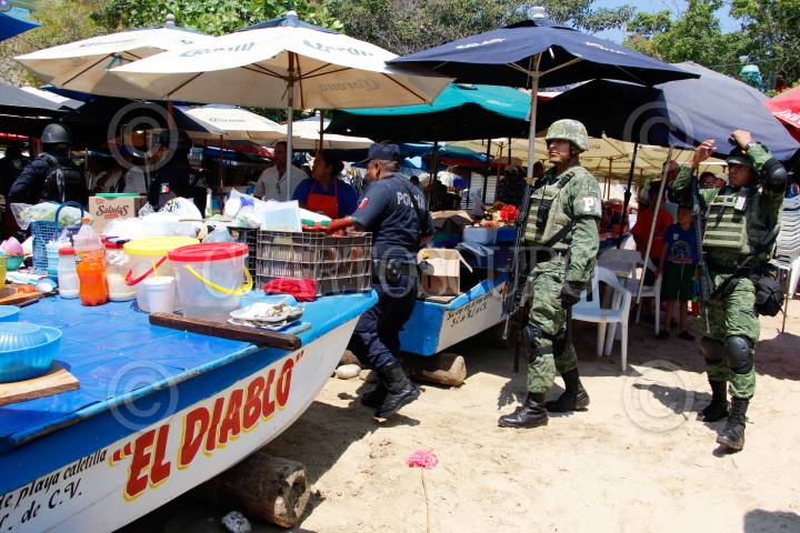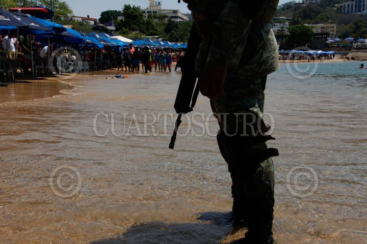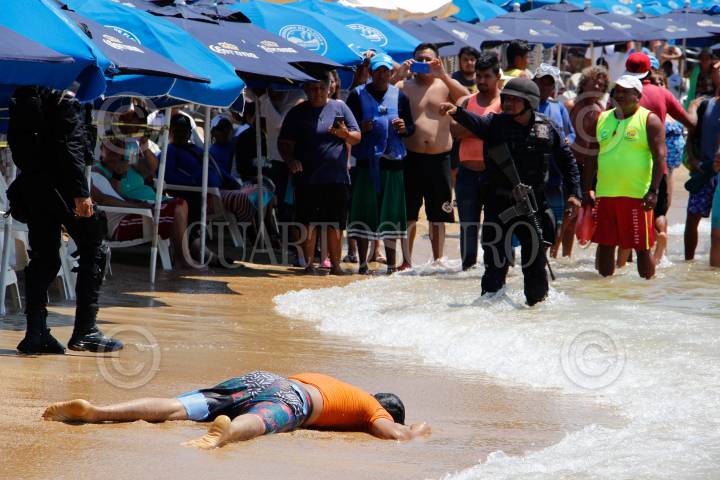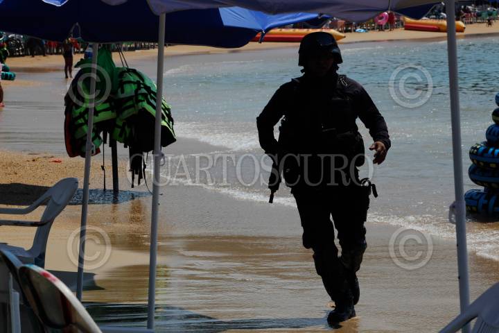 ACAPULCO, GUERRERO, 15ABRIL2018.- Un hombre resultó muerto a balazos frente a cientos de turistas en la playa Caletilla en la zona tradicional de Acapulco, y dos presuntos agresores fueron detenidos por soldados y policías, con esta es la segunda balacera que ocurre en esta playa en menos de un mes. FOTO: CARLOS CARBAJAL /CUARTOSCURO.COM