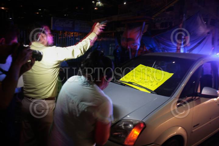 ACAPULCO, GUERRERO, 25AGOSTO2015.- Alrededor de las 23:30 horas una llamada anónima al 066 alerto a las autoridades policiacas que en la carretera Acapulco- México, a la altura del mercado de la calle 20 de noviembre con dirección a las cruces, se encontraba un auto abandonado. Al llegar al lugar confirmaron que un vehículo abandonado tipo Meriva Chevrolet color gris con placas de circulación 546-SWS del D.F, presentaba impactos de arma de fuego, al revisarlo encontraron el cuerpo de una persona del sexo masculino y una cartulina en el parabrisas. El occiso hasta el momento se encuentra en calidad de desconocido. En el lugar se encontraron cinco casquillos calibre 45. FOTO: BERNANDINO HERNANDEZ /CUARTOSCURO.COM