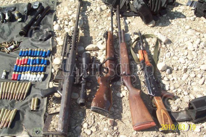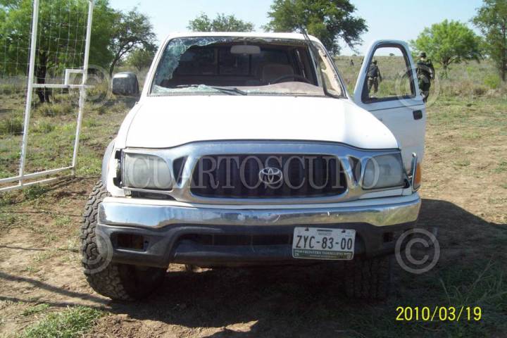 LOS HERRERA, NUEVO LEON, 19MARZO2010.- Elementos del Ejercito lograron la liberación de dos personas que se encontraban privadas de su libertad durante un enfrentamiento con presuntos integrantes de la delincuencia organizada. Los hechos tuvieron lugar cuando los efectivos militares realizaban reconocimientos terrestres, resultando muertos 4 agresores; se aseguraron 6 armas largas, 2 armas cortas, 1724 cartuchos de diferentes calibres, 55 cargadores para diferentes armas, 7 granadas de fragmentación, 5 vehículos de diferentes características y equipo diverso. FOTO: CUARTOSCURO.COM