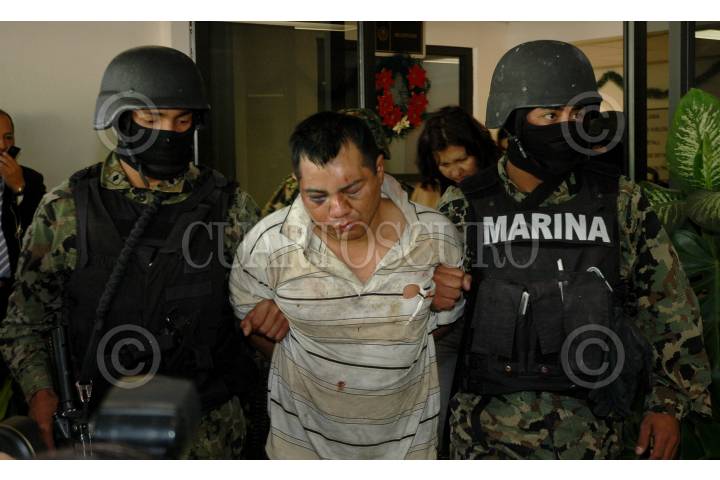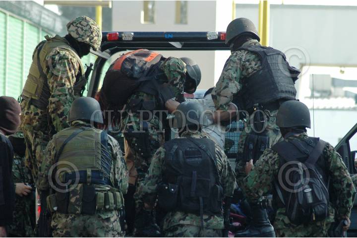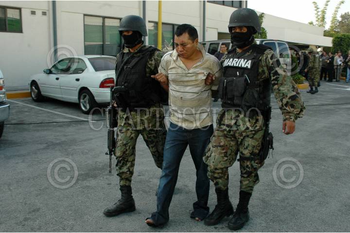 MÉXICO, D.F. 17DICIEMBRE2009.- Elementos de la Marina - Armada de México aseguro a tres presuntos delincuentes después de un enfrentamiento en un condominio del centro de Cuernavaca, Morelos donde resulto muerto Arturo Beltran Leyva, líder del cártel de Sinaloa; fueron asegurados 3 personas, así como 40 mil dolares en efectivo, 5 armas y mas de 400 cartuchos útiles de diferentes calibres. FOTO: RODOLFO ANGULO/CUARTOSCURO.COM