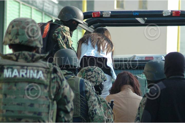 MÉXICO, D.F. 17DICIEMBRE2009.- Elementos de la Marina - Armada de México aseguro a tres presuntos delincuentes, Catalina Castro López, Gabriela Vega Pérez y una persona del sexo masculino que no proporciono su nombre debido a su estado de salud. Esto después de un enfrentamiento en un condominio del centro de Cuernavaca, Morelos donde resulto muerto Arturo Beltran Leyva, líder del cártel de Sinaloa; fueron asegurados 40 mil dolares en efectivo, 5 armas y mas de 400 cartuchos útiles de diferentes calibres. FOTO: RODOLFO ANGULO/CUARTOSCURO.COM