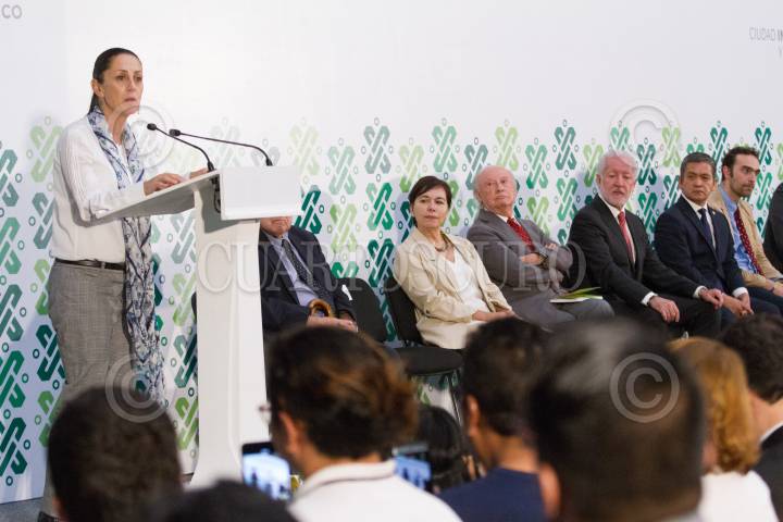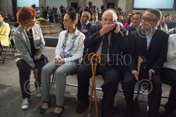 CIUDAD DE MEXICO, 04JUNIO2019.-Claudia Sheinbaum, jefa del Gobierno de la Ciudad, Victor Manuel Toledo, titular de Semarnat y Víctor Hugo Páramo Figueroa, coordinador ejecutivo de la Comisión Ambiental de la Megalópolis, durante la presentación de las medidas para mejorar la calidad del Aire, en el Museo interactivo MIDE, en el centro histórico de la Ciudad. FOTO: VICTIRIA VALTIERRA /CUARTOSCURO.COM
