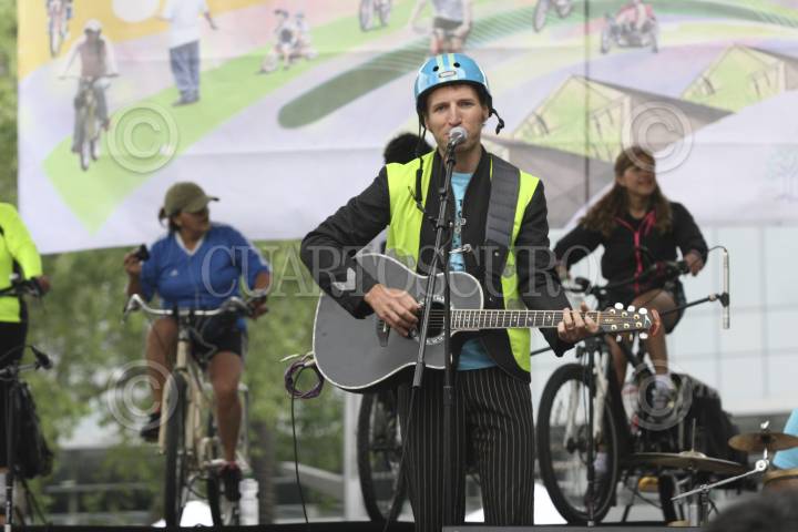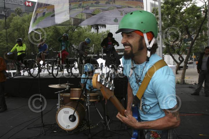 MÉXICO, D.F., 13MAYO2012.- The Ginger Ninjas, músicos estadounidenses que generan la luz de sus aparatos con bicicletas, participaron en el 5to aniversario de Muevete en Bici. Los californianos han recorrido el País en Bicicleta llegando hasta sus conciertos en ellas. En el Escenario suben a personas del público para mantener encendidos sus aparatos. FOTO: JUAN PABLO ZAMORA /CUARTOSCURO.COM