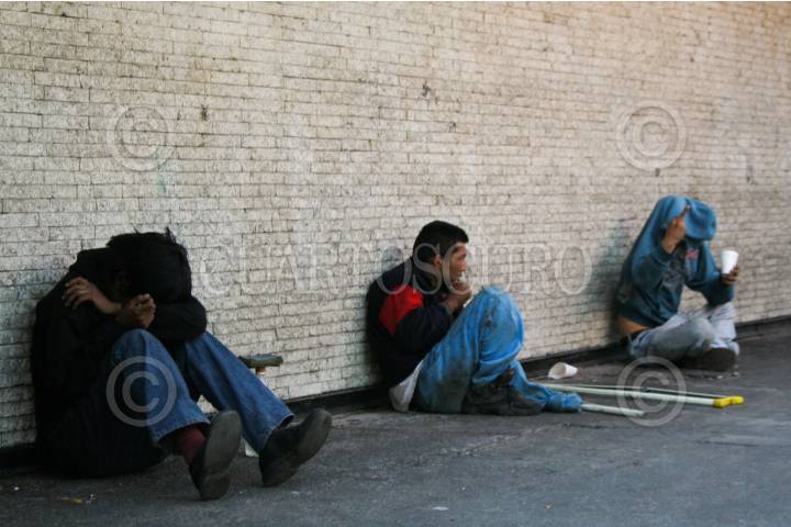 MÉXICO, D.F., 24DICIEMBRE2008.- En gran parte de la ciudad es comun ver a gente que vive en la calle, algunos de ellos son personas que desde niños se encuentran ahi por diversos problemas o por abandono y encuentran a las avenidas publicas como un lugar donde vivir, tambien entre los indigentes, la drogadiccion es una forma facil de escapar de la realidad en la que viven. FOTO: ENRIQUE ORDÓÑEZ/CUARTOSCURO.COM