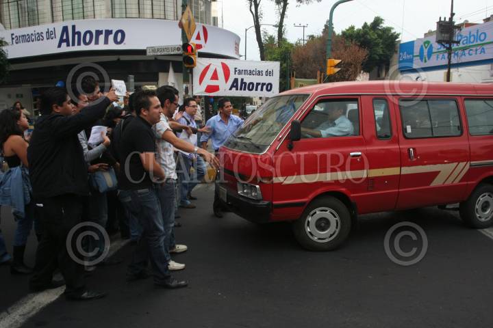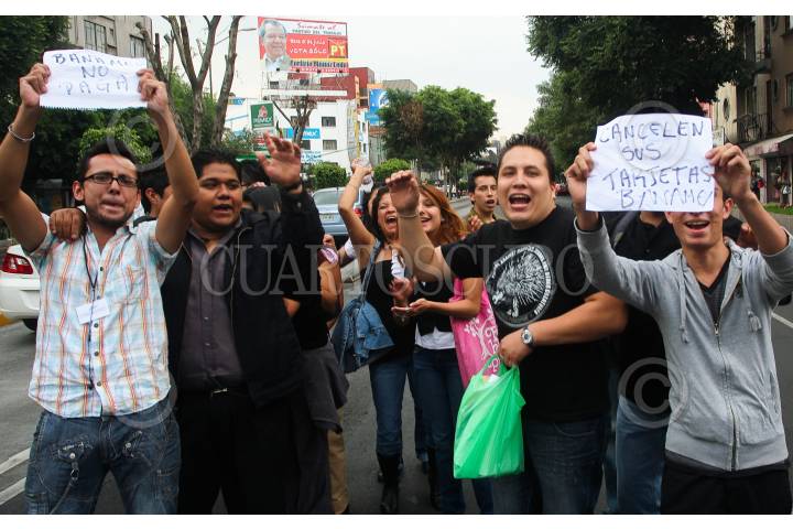 MÉXICO D.F., 15JUNIO2009.- Decenas de trabajadores de un Call Center, bloquearon por varios minutos ambos sentidos de la avenida Insurgentes a la altura de la calle de Aguascalientes en la colonia Condesa. Los inconformes en su mayoría jóvenes argumentaron que llevan más de 15 dias sin recibir su salario. FOTO: SAÚL LÓPEZ/CUARTOSCURO.COM