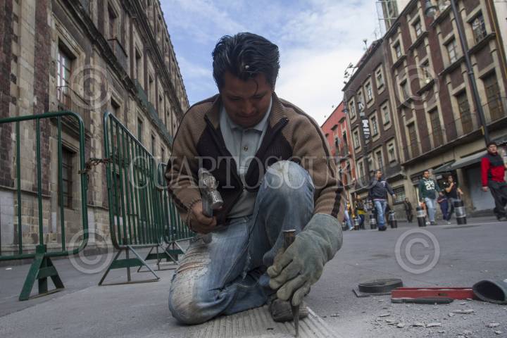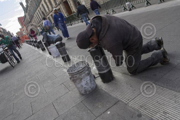 MÉXICO, D.F., 03FEBRERO2015.- Trabajadores ultiman detalles en la remodelación de la Calle Moneda, en el Centro Histórico de la ciudad, la cual será parcialmente peatonal y se reabrirá en próximos días. FOTO: ISAAC ESQUIVEL /CUARTOSCURO.COM