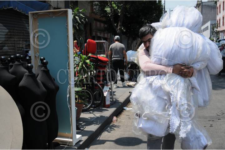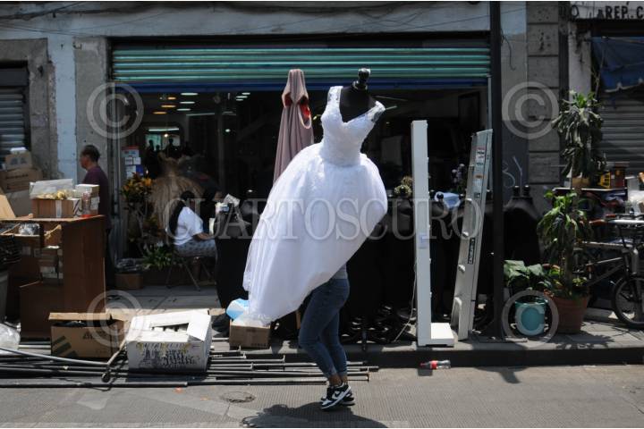 CIUDAD DE MÉXICO, 08MAYO2024. - Los locatarios de la "Calle de las Novias" fueron desalojados de sus negocios, lo que los obligó a transportar sus pertenencias a otros sitios luego de que las dejaran en la calle. FOTO: DANIEL AUGUSTO /CUARTOSCURO.COM