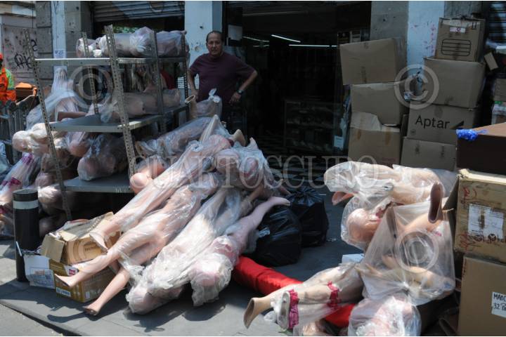 CIUDAD DE MÉXICO, 08MAYO2024. - Maniquíes y vestidos fueron abandonados en la calle luego de que los negocios resultaran desalojados. FOTO: DANIEL AUGUSTO /CUARTOSCURO.COM
