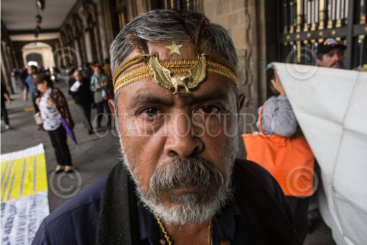 CIUDAD DE MÉXICO 07FEBRERO2018.- Un señor que camina por el centro de la capital decora su rostro con un águila y una estrella dorada. FOTO: TERCERO DÍAZ /CUARTOSCURO.COM