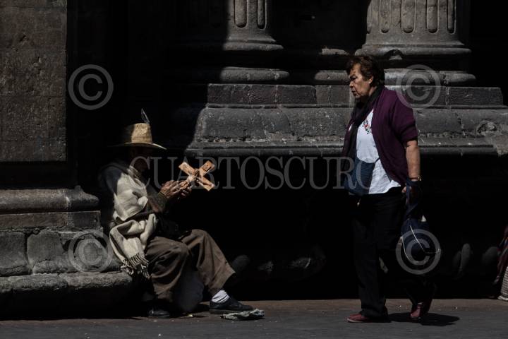 CIUDAD DE MÉXICO, 14FEBRERO2018.- Un señor realiza figuras religiosas con madera a las afueras de una iglesia en el centro histórico de la capital. FOTO: TERCERO DÍAZ /CUARTOSCURO.COM