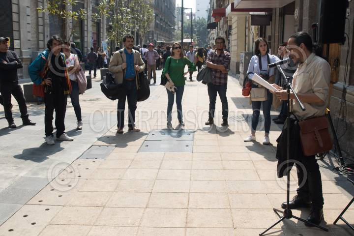 CIUDAD DE MÉXICO, 14FEBRERO2019.- La Secretaría de Cultura y la revista La Otra realizaron la jornada de poesía "Por un mundo sin muros", en el marco del Día de San Valentín. Varios poetas ofrecieron la lectura de su obra en diferentes calles del Centro Histórico. FOTO: MOISÉS PABLO /CUARTOSCURO.COM
