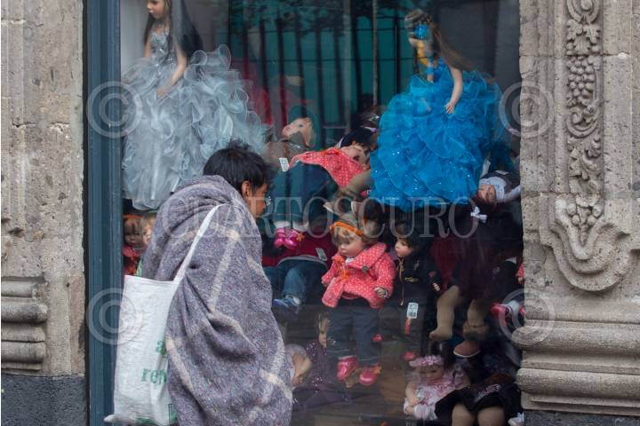 CIUDAD DE MÉXICO, 23ENERO2018.- Un hombre en condición de calle observa muñecas a traves de la ventana de una tienda en la zona centro. FOTO: TERCERO DÍAZ /CUARTOSCURO.COM