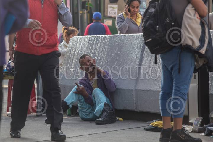 CIUDAD DE MÉXICO, 23ENERO2018.- Un hombre en condición de calle circula en las inmediaciones de la estación Insurgentes del metro mientras consume la dorga conocida como "mona". FOTO: TERCERO DÍAZ /CUARTOSCURO.COM