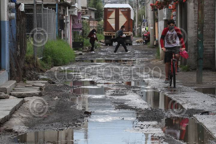 Calle afectada por las lluvias en el Pueblo de San Luis Tlaxialtemalco.