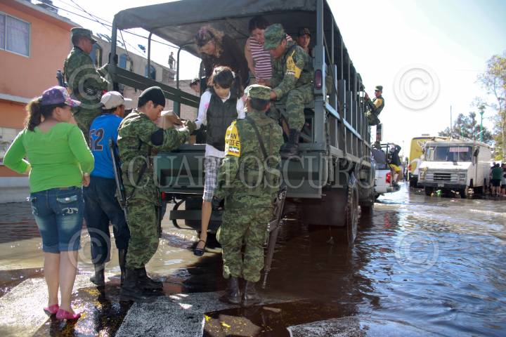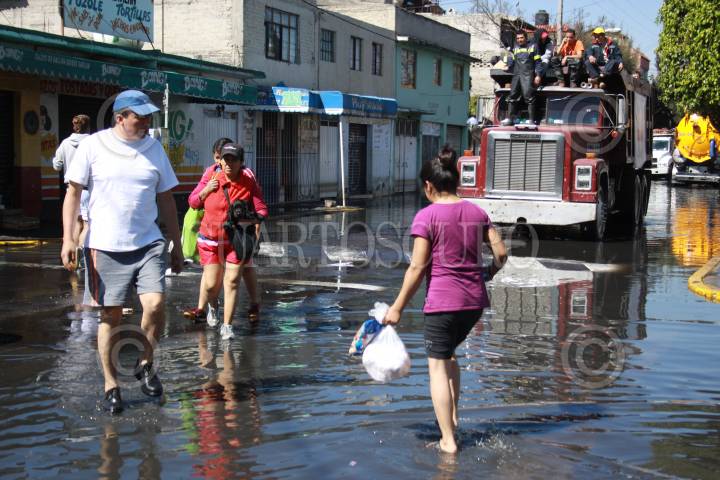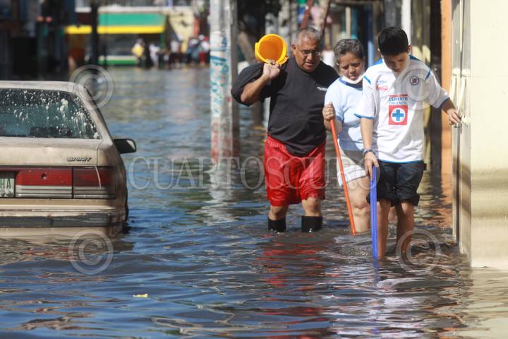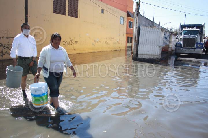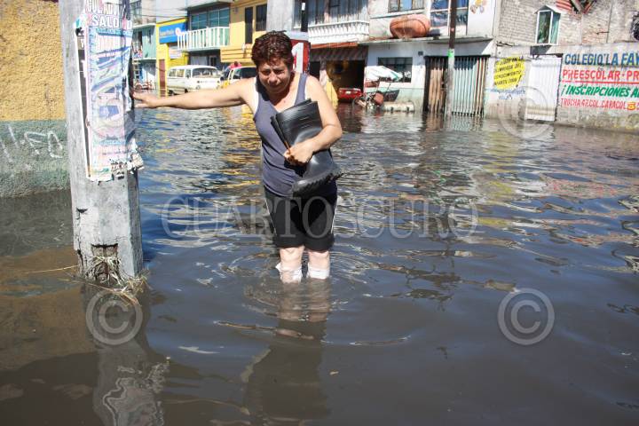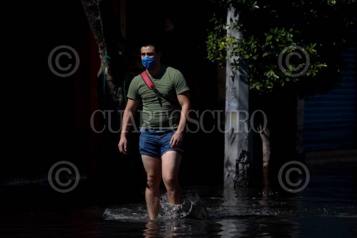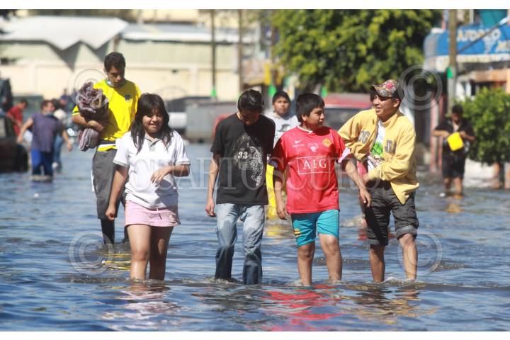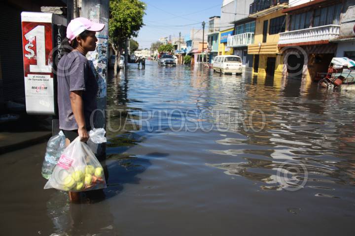 MÉXICO, D.F, 07FEBRERO2010.- Vecinos de la colonia el Arenal en la Delegación Venustia Carranza, caminan por las aguas negras que desde el jueves mantiene inundadas sus calles. FOTO: SÁSHENKA GUTIÉRREZ/CUARTOSCURO.COM