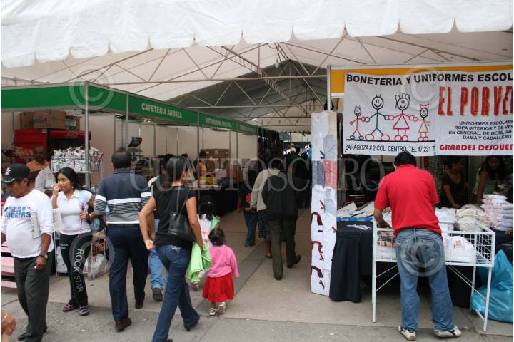 CHILPANCINGO, GUERRERO., 10AGOSTO2008.- Puestos que participaran en lo que sera "La Feria del Regreso a Clases 2008" en el zocalo de la capital del estado, promovida por el Ayuntamiento de la ciudad y la PROFECO, la cual sera inaugurada este lunes por parte de las autoridades estatales. FOTO: OSCAR ALVARADO/CUARTOSCURO.COM