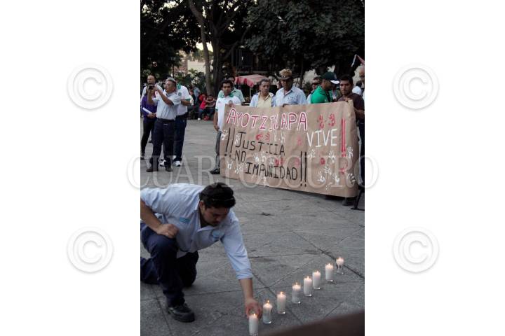 CUERNAVACA, MORELOS, 26FEBRERO2014.- Integrantes del Pacto por la Soberanía Alimentaria y Energética, así como integrantes del Sindicato de Telefonistas participaron en la novena acción global por Ayotzinapa realizando una marcha del Calvario al Zócalo donde realizaron un mitin en el que exigieron justicia y verdad por el reciente asesinato del activista Gustavo Salgado. FOTO: PATRICIA MORALES / CUARTOSCURO.COM