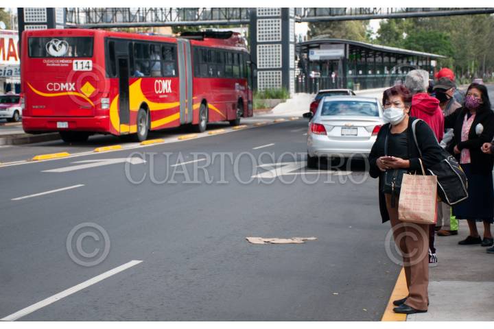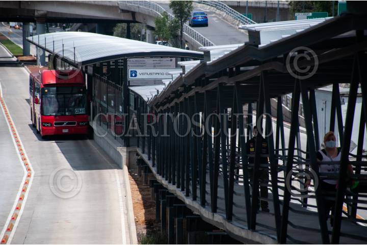 Paso del Metrobús en la estación Moctezuma, la cual aún se encuentra cerrada.